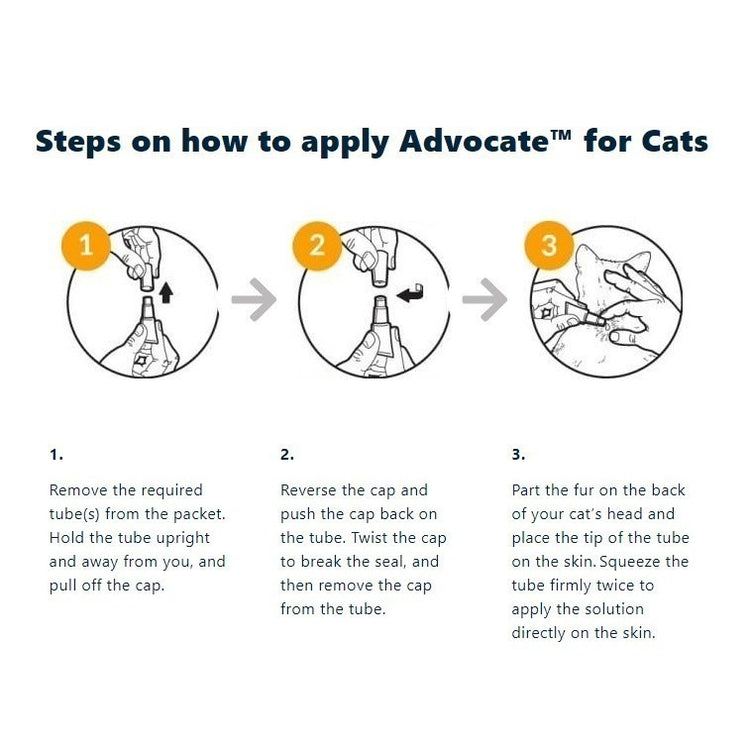 Advocate protects cats inside and out. Providing comprehensive protection from fleas, heartworm, intestinal worms, lungworms, ear mites and feline mange mites. An easy to use spot-on applied monthly.