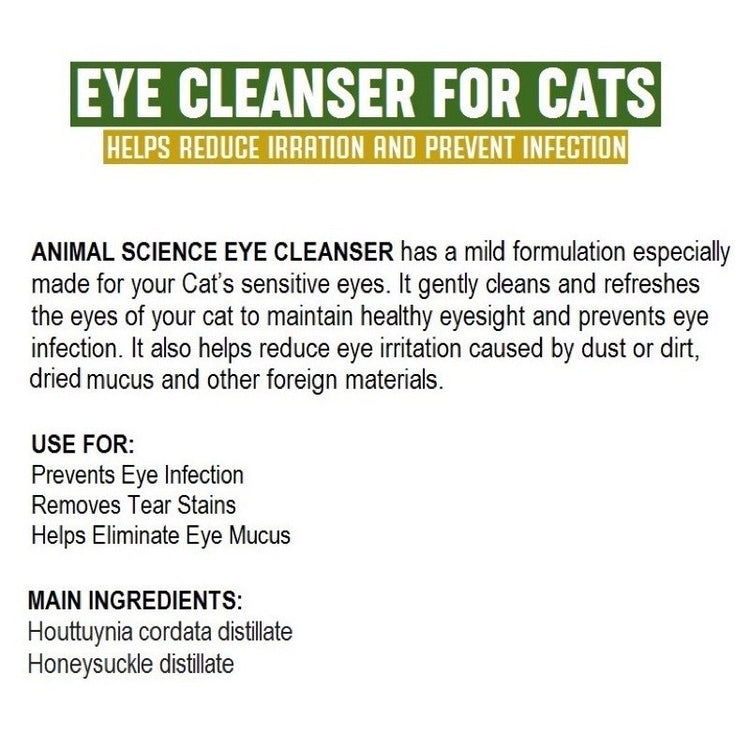 Animal Science Eye Cleanser For Cats and Dogs- has a mild formulation especially made for your pet’s sensitive eyes. It gently cleans and refreshes the eyes of your pet to maintain healthy eyesight and prevent eye infection. It also helps reduce eye irritation caused by dust or dirt, dried mucus, pollen and other foreign materials.