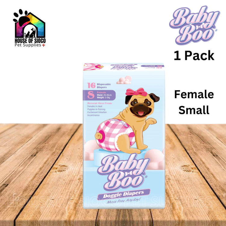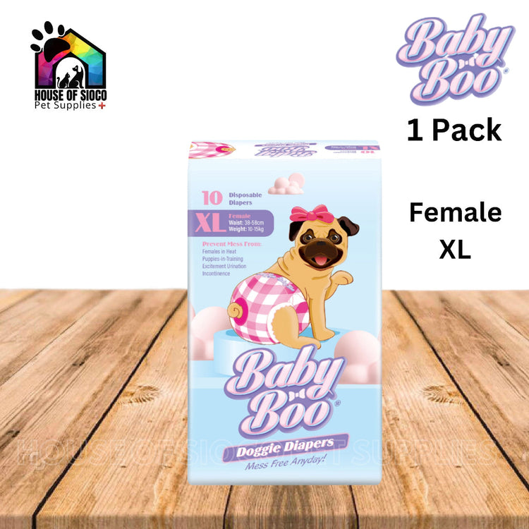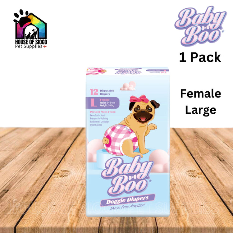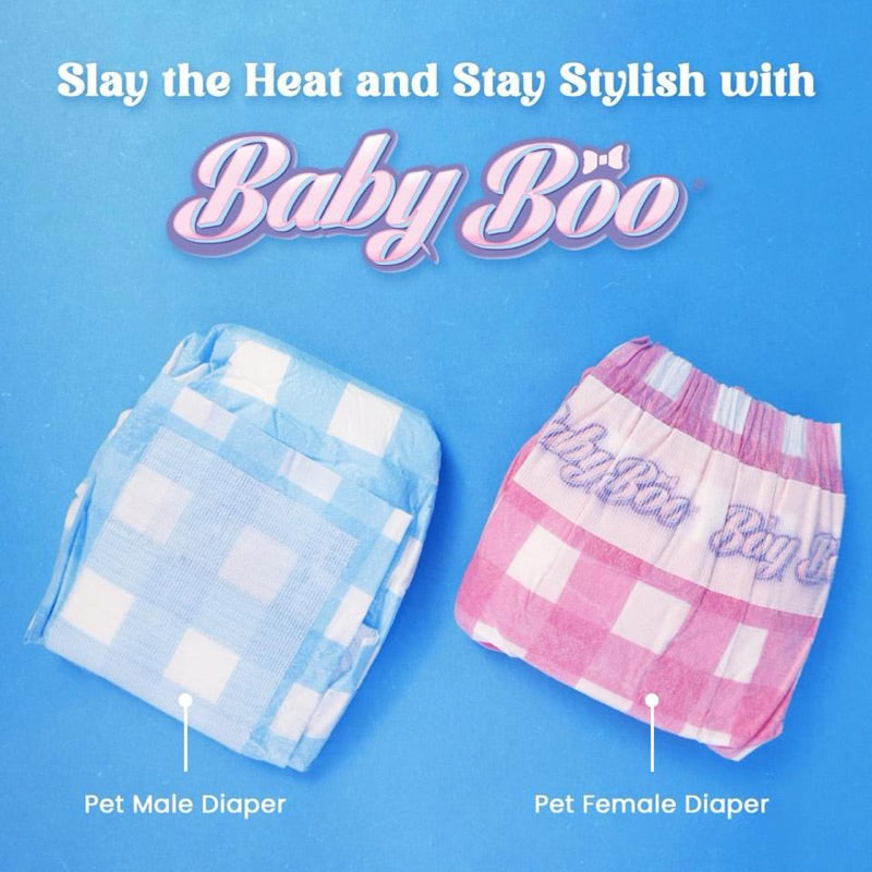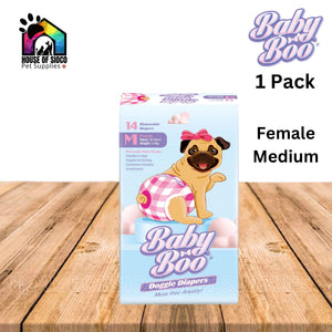Baby Boo Doggie Diapers are designed to help pet parents maintain good hygiene for their dogs. This product is not a toy and should be kept out of reach of children and animals. On first use, occasional nipping at the diaper is common for dogs unfamiliar with wearing garments.