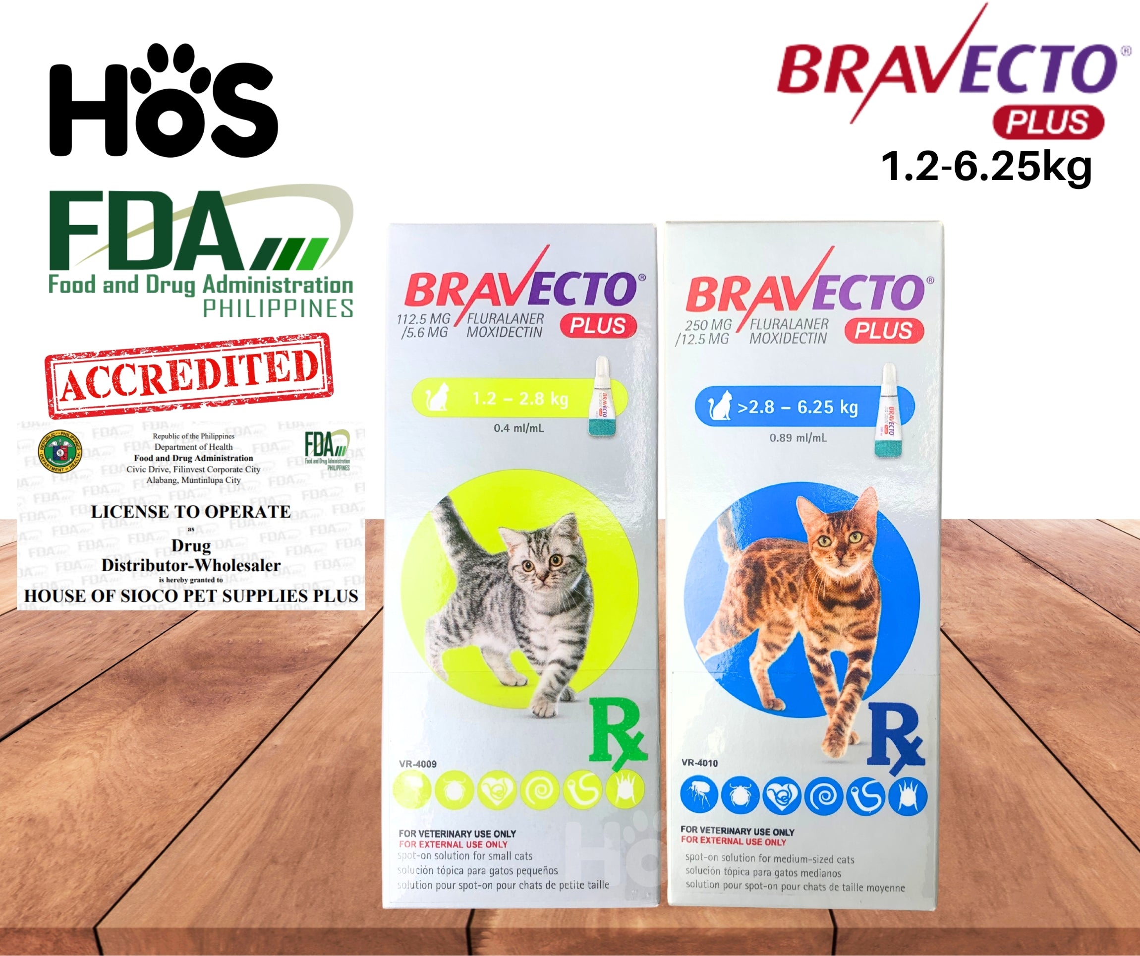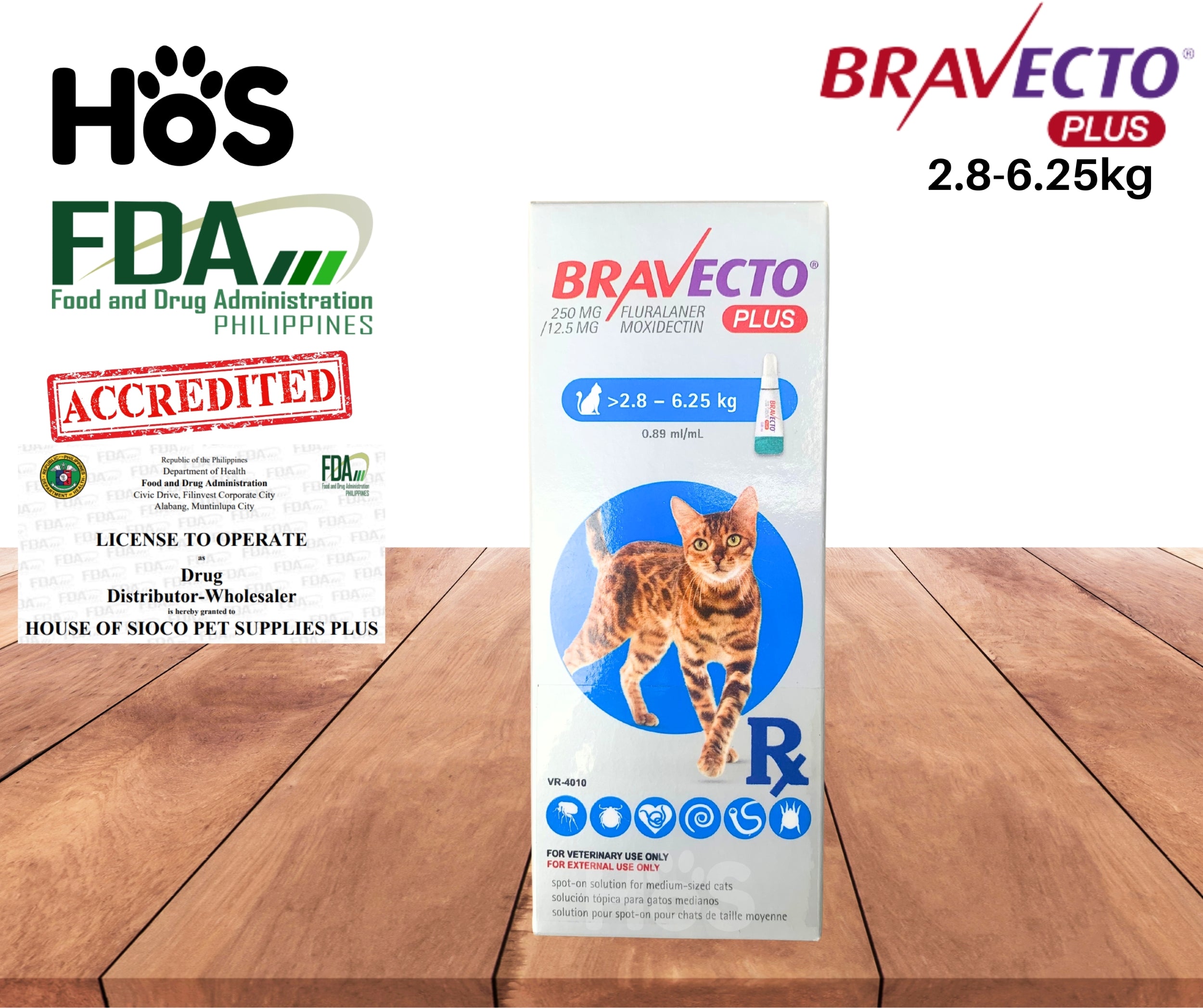 Medium cats (2.8 - 6.25 kg): 250 mg Fluralaner / 12.5 mg Moxidectin