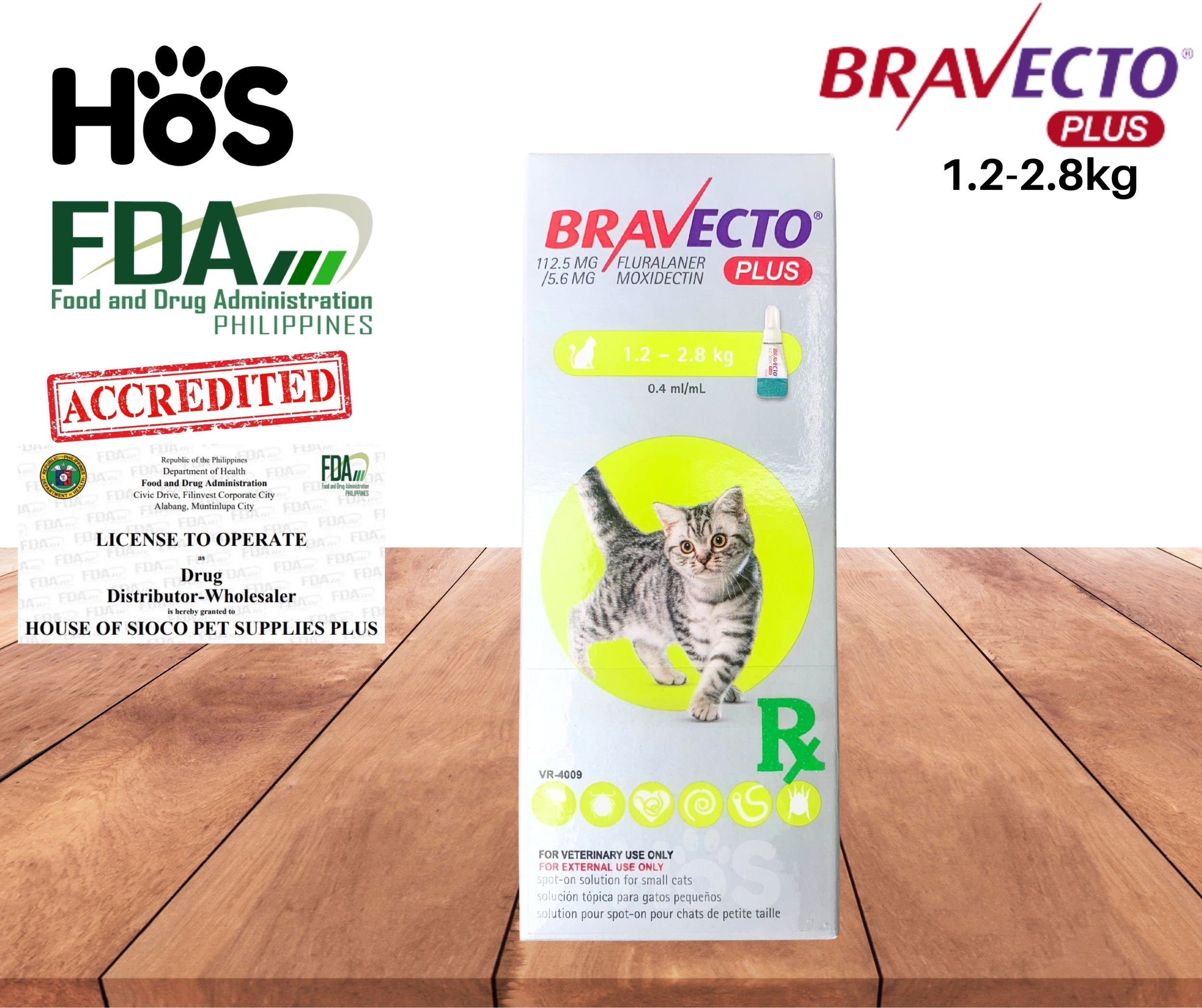 Small cats (1.2 - 2.8 kg): 112.5 mg Fluralaner / 5.6 mg Moxidectin