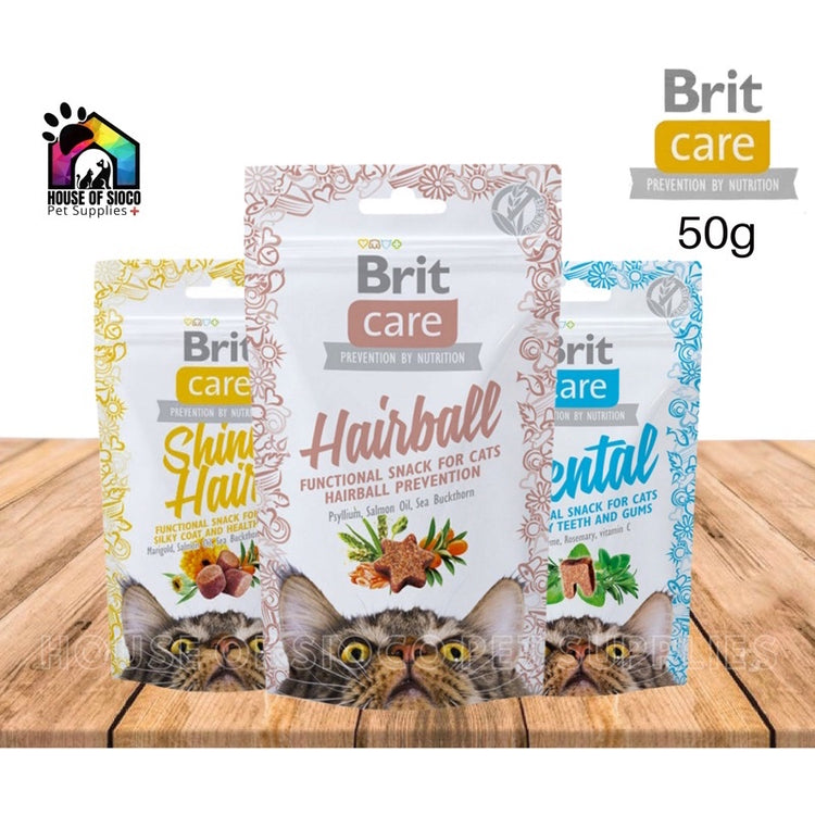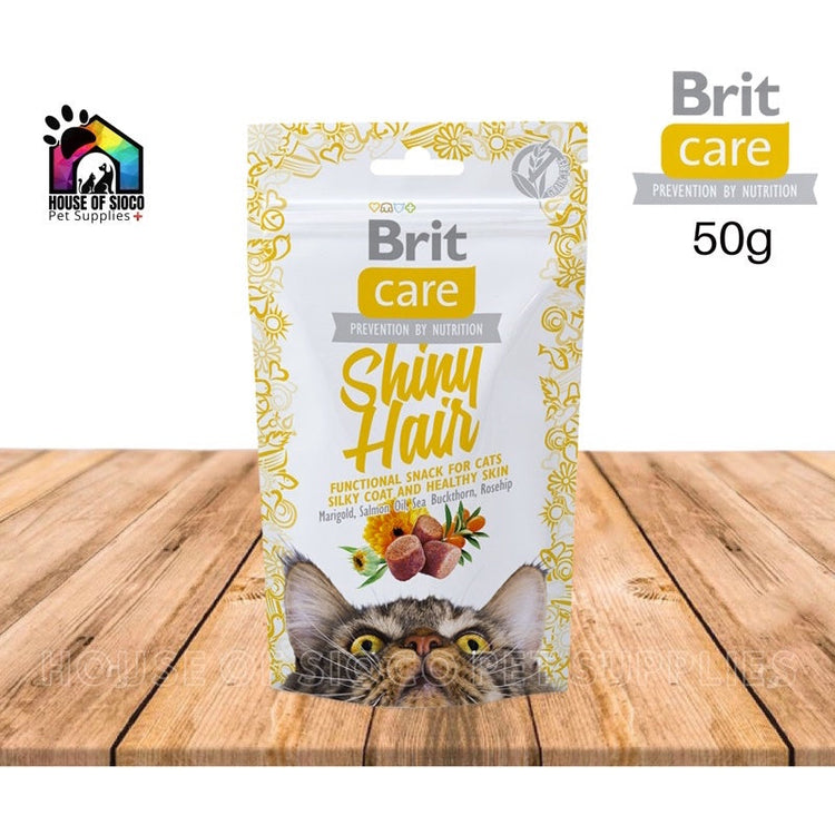 *Brit Care Cat Snack Shiny Hair - Functional grain free snack for silky coat and healthy skin. Marigold, Salmon Oil, Sea Buckthorn. Complementary semi-moist cat food.