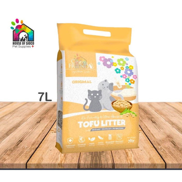 Cindy & Friends Eco-Friendly & Ultra Absorbent Tofu Litter with Qik-Clump technology + antibacterial is made from 100% natural plant based fibers. Created from human grade food fibers, our tofu litter has over three times the absorption power, trapping and locking in liquids almost instantly. The eco-friendly antibacterial technology kills harmful bacteria, neutralizes toxins and smell from bio-waste thus, keeping the environment clean from unpleasant odour. Formulated free of chemicals, our tofu litter does not contain any synthetic additives and is 100% sustainable and biodegradable.