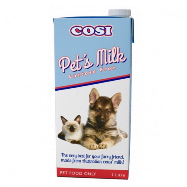 COSI Pet's Milk is regular milk with all the lactose removed, adding to a well balanced meal for your pets. Recommended for pets of the mammalian variety including cats, dogs, ferrets and rabbits. Excludes reptiles, amphibians and birds. Also good for newborns animals.