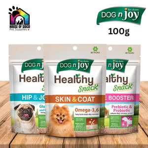 Good health needs supplement. Dog n joy Healthy Snacks, snacks for dogs’ good health, properly fulfill daily nutrients required by the body. These snacks are rich with Glucosamine and Chondroitin, Calcium and Omega which help support dogs’ bones and joints. Besides enjoying these delicious snacks, dogs will also be healthy.