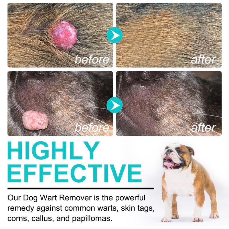 Our Dog Wart Remover is the powerful remedy against common and plantar dog warts, skin tags, corns, callus, and papillomas.