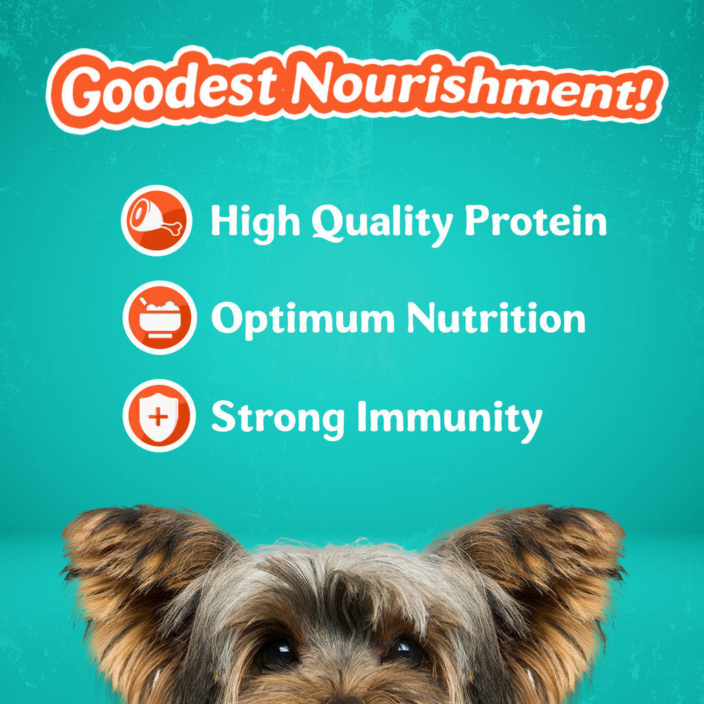 Goodest Wet Dog Food is deliciously made with real meat to provide the optimum nutrition they need to support strong immunity.