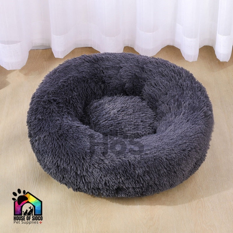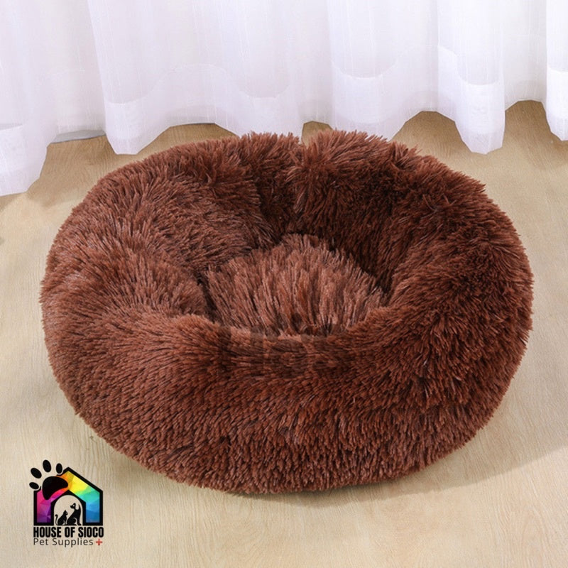 This faux fur donut pet bed is ideal for pets. Its deep crevices allows pets to burrow, which give cats and dogs full, sweet sleep.