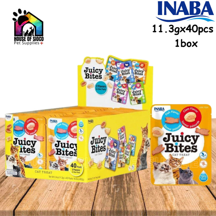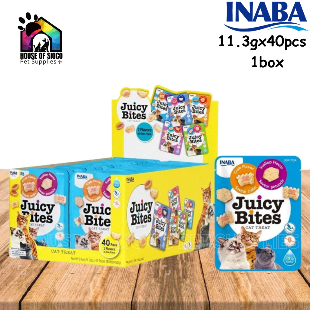 INABA Juicy Bites are irresistibly moist, bite-sized soft tuna and chicken treats seasoned with natural flavors, green tea extract and Vitamin E. No grains, preservatives or artificial colors. Each treat pack has two fun shapes in two different flavors to keep cats satisfied.