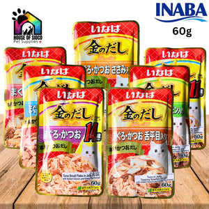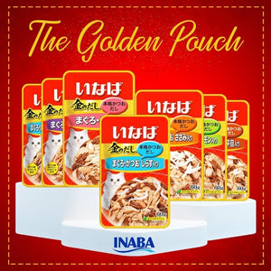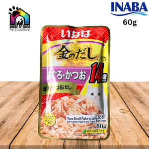 INABA Golden Stock Pouch is made with tuna cooked in rich golden stock for a premium meal fit for royalty. The tuna is hand-shredded into small tuna flakes for easier digestion. Every pouch is 100% human-grade quality, and is easy to feed. Available in 7 different recipes.