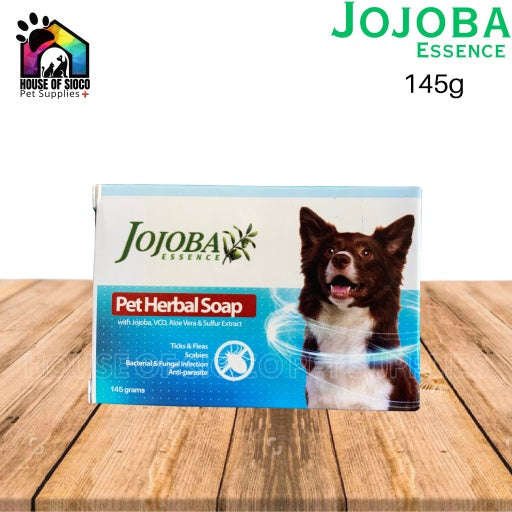 Jojoba pet herbal soap is a medicated veterinarian formula for tick and fleas, scabies, anti-parasite with no skin irritation, bacterial and fungal infection. It also relieves flea-bites, bacterial dermatitis and itching. With the presence pf Jojoba and Aloe Vera extract, it soothes skin and aids in cell renewal.