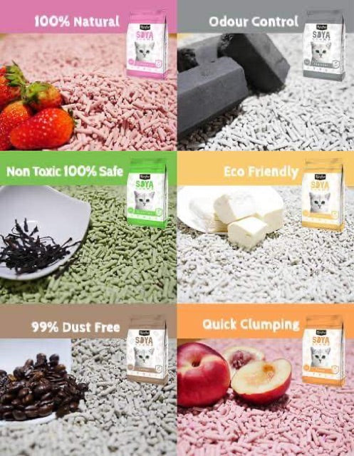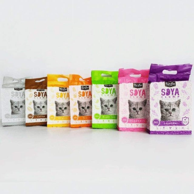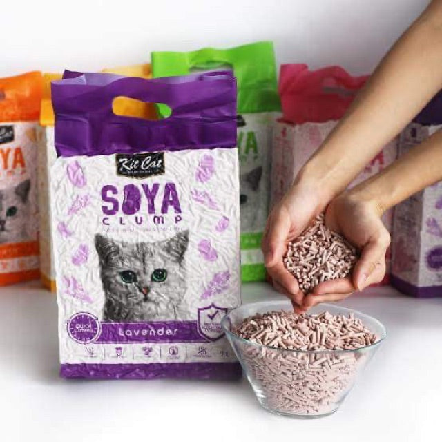 Kit Cat Soya Clump is 100% biodegradable soy-based cat litter with mild aroma. This unique product is made from the insoluble parts of a soybean which is found in soymilk production. Normally these insoluble parts are mainly disposed in a landfill, but Kit Cat innovates a second purpose for this ‘wasted’ material to be used as cat litter, labeling us as Eco-Friendly.
