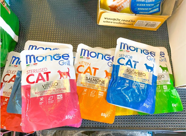 With 7 new products for Kitten, Adult and Sterilised cats, Monge presents the new Monge Grill chunks, oven-cooked and formulated to be closer to a cat’s natural diet, enriched with vitamins and minerals for a complete, balanced meal and made exclusively using fresh meat and fish to delight the palate of the most exacting cats!
