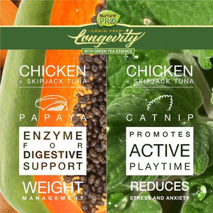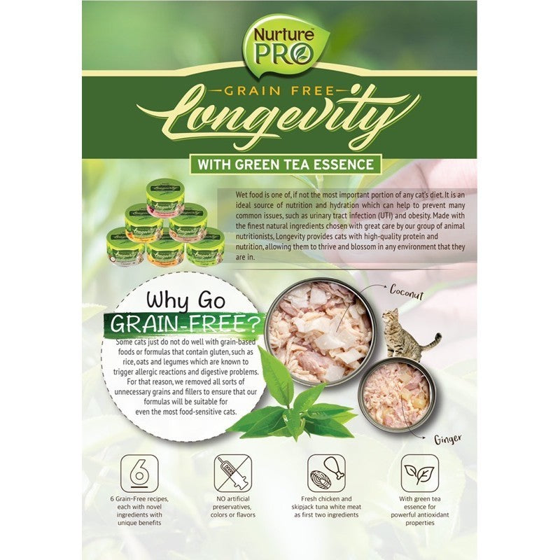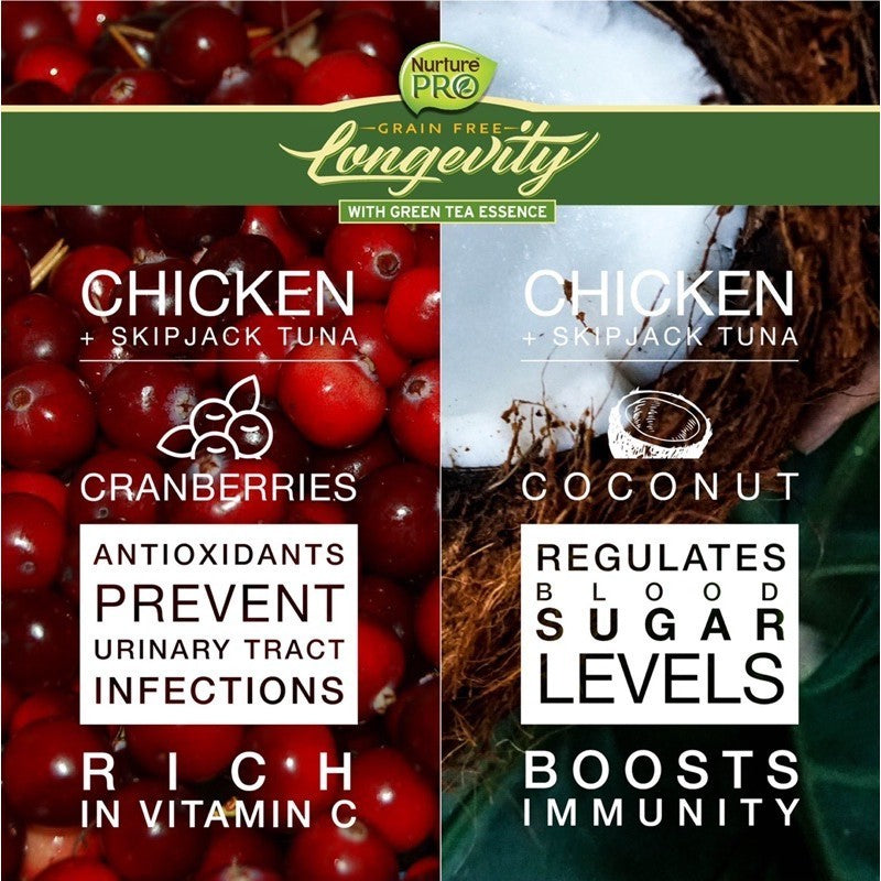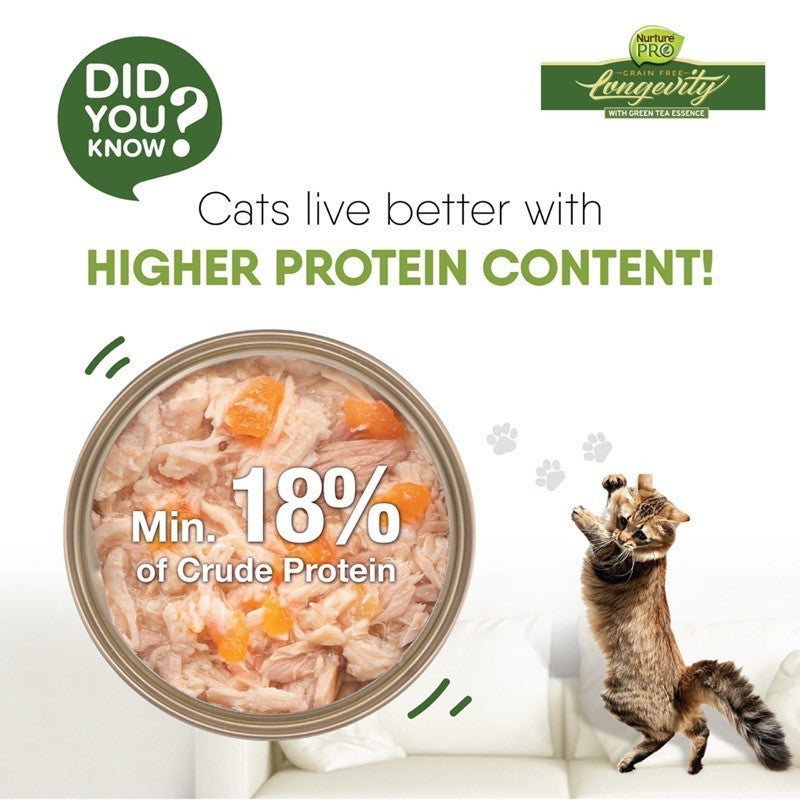 Nurture Pro Longevity cat canned food is packed with your cat needs to be healthy and happy. Every can is grain-free, high in protein, fresh, natural and completely human-grade! Infused with Taurine and Lysine. It’s perfect for your feline friend’s daily dietary needs.