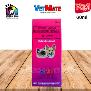 Papi Liv-well is a natural food supplement for Dogs and Cats for a healthy Liver, Heart and Brain. It is a combination of Silymarin or Milk Thistle which specifically protects Liver against toxin, L-Carnitine that helps fat metabolism and DHA (Docosahexaenoic Acid) an Omega-3 fatty acid for faster brain development and serve as an anti-inflammatory. Papi Liv-well also helps increase appetite, regeneration of damage liver cells, elimination of toxins, enhances digestion and promotion of better growth.