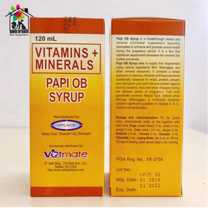 Papi OB Syrup contains a broad spectrum of vitamins, minerals and trace elements nutritionally balanced to resist, protect, prevent and strengthen your pet’s immune system against harmful bacteria, virus and other diseases during pregnancy. Folic acid specifically prevents Neural Tube defects while Moringa contains significant quantities of vitamins A,B,C, Calcium, Iron, and Protein.