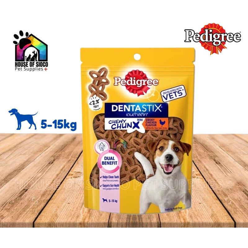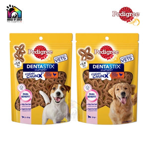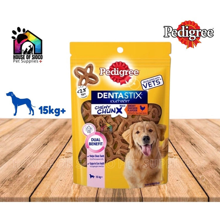 The PEDIGREE Dentastix Chewy Chunx Dog Treats help maintain your furry friend's gum health in every bite. This chunky, chewy dog treats has an active ingredient (STPP), which helps reduce tartar build-up and supports healthy gums!
