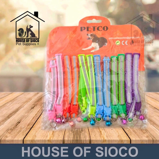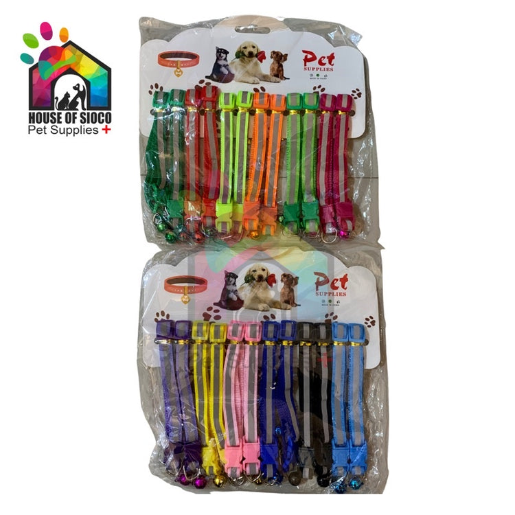 Pet Collar Reflective Stripe Design w/ Bell 1cm
