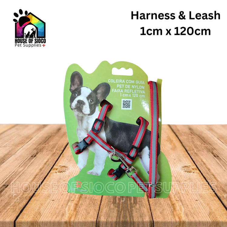 Pet Harness With Leash (Nylon With Reflective Strip)