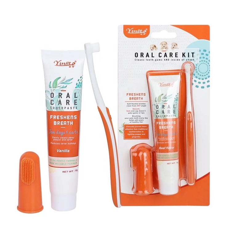 -After pet adaptation, apply a small amount of toothpaste on the toothbrush or the finger, wipe repeatedly between the lips and cheeks and the surrounding of the front teeth.