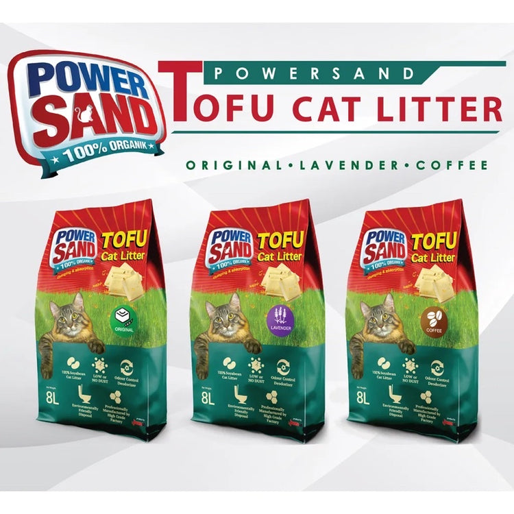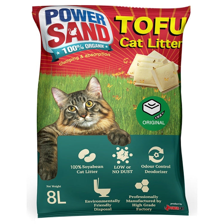 POWER SAND TOFU Cat Litter is produced using 100% organic bean sediment and pure natural plant fibers. It has little to no dust, high water absorption and fast-clumping properties. Tofu cat litter is also water-soluble, meaning it can be thrown directly into the toilet after use and won’t clog the toilet. On top of that, its excellent deodorizing capabilities ensures that the area surrounding the litter box remains fresh and odourless.