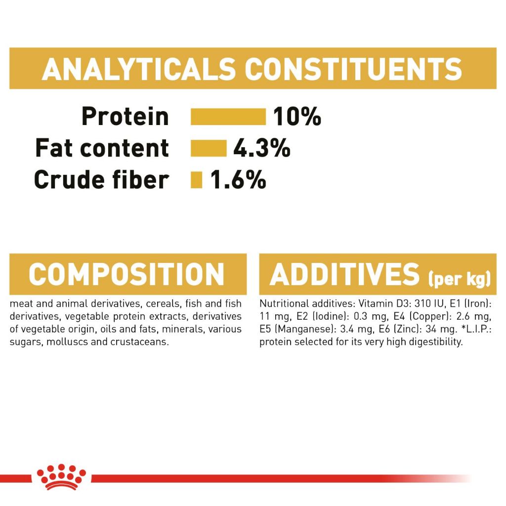 ROYAL CANIN® Maine Coon Adult Gravy is enriched with Taurine, DHA and EPA (Omega-3 fatty acids) to help maintain muscle and bone strength, as well as support healthy cardiac function. The formula contains highly concentrated energy to provide your large cat with the energy levels it needs to complete its daily routines. The Maine Coon cat has a dense, semi-long coat with a fine, soft undercoat. The specific amino acids, vitamins, Omega-3 and Omega-6 fatty acids contained in the formula will help maintain your cat's skin and coat health.