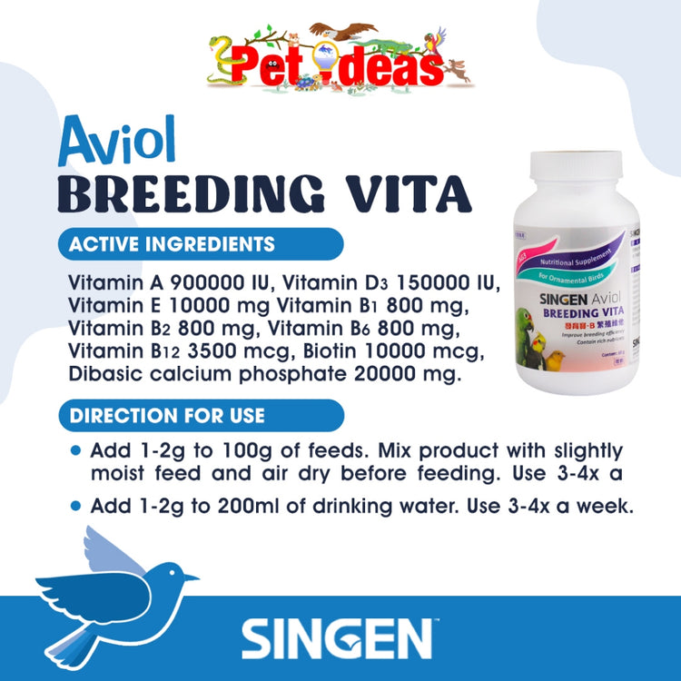 2. Add 1-2g to 200ml of drinking water (each spoon contains about 2.5g). Let the bird feel a little thirsty before feeding. 3-4 times a week.