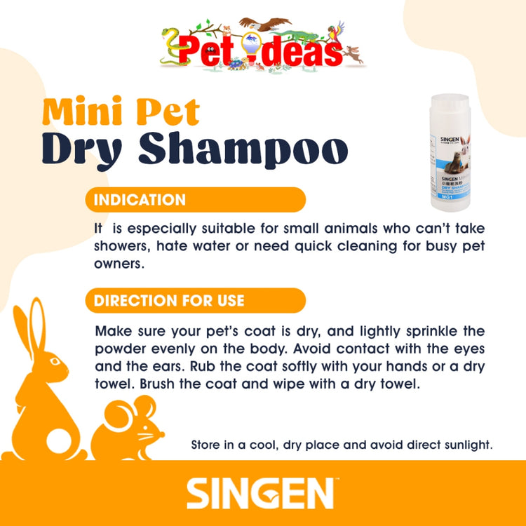SINGENMiniPet Dry Shampoo cleans your pet's skin and coat gently and rapidly. It absorbs dirt, removes unpleasant odor and keeps your pet smelling fresh