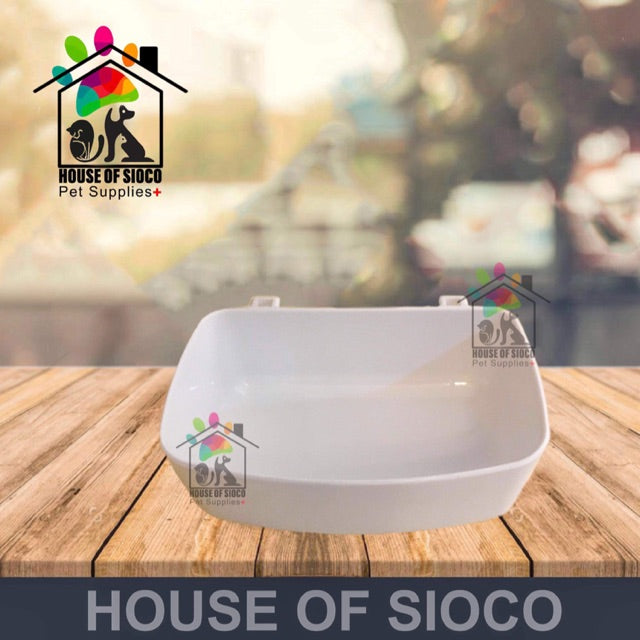 Plastic detachable pet bowl made for travel crates and pet cages.
