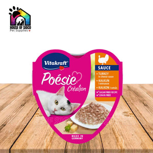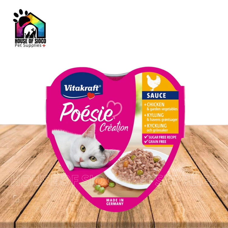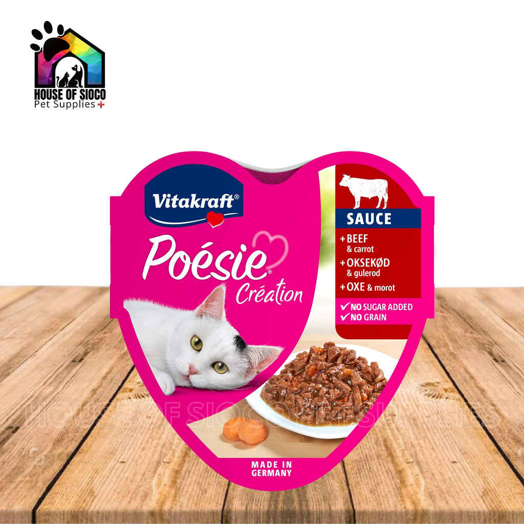 Each type of Poesie contains irresistible taste, the best ingredients and a balanced dose of love, which is exactly what your little tiger wants. The delicious 85g menus are ideally suited to the nutritional needs of adult indoor cats. Each recipe is carefully prepared to ensure that your cat gets nothing but the highest quality food from our Poesie.