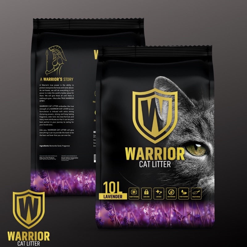Warrior Cat litter embodies the true strength of a WARRIOR CAT LOVER as our formulation is imbued with extra strong clumping powers, strong and long lasting fragrance, odor lock, low dust formula and many more attributes.