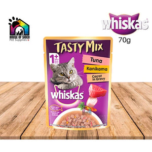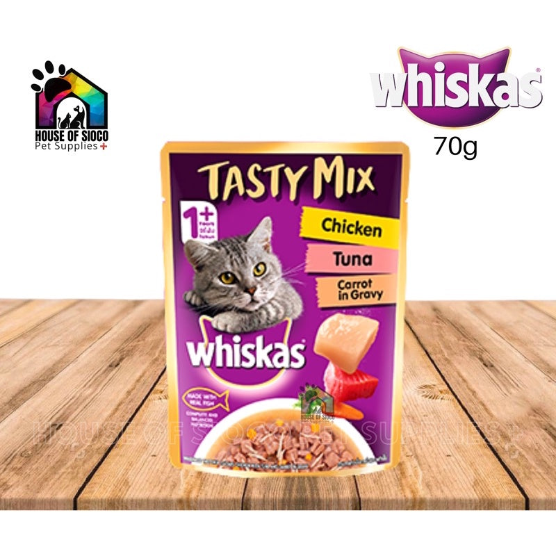 The Whiskas Tasty Mix Range makes mealtimes more exciting because it has all the enticing flavours that cats love. It is also as nutritious as it is delicious because it is made with real fish, chicken and vegetables.