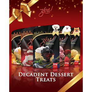 Indulge your furbabies with Zert Dessert Sticks- the perfect 100g package of sweetness and delight